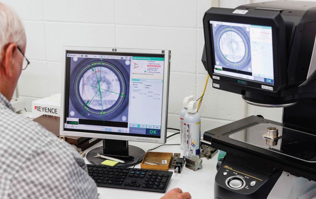 Figure 3. Cinch engineer subjecting component prototype to up close examination and compliance testing.