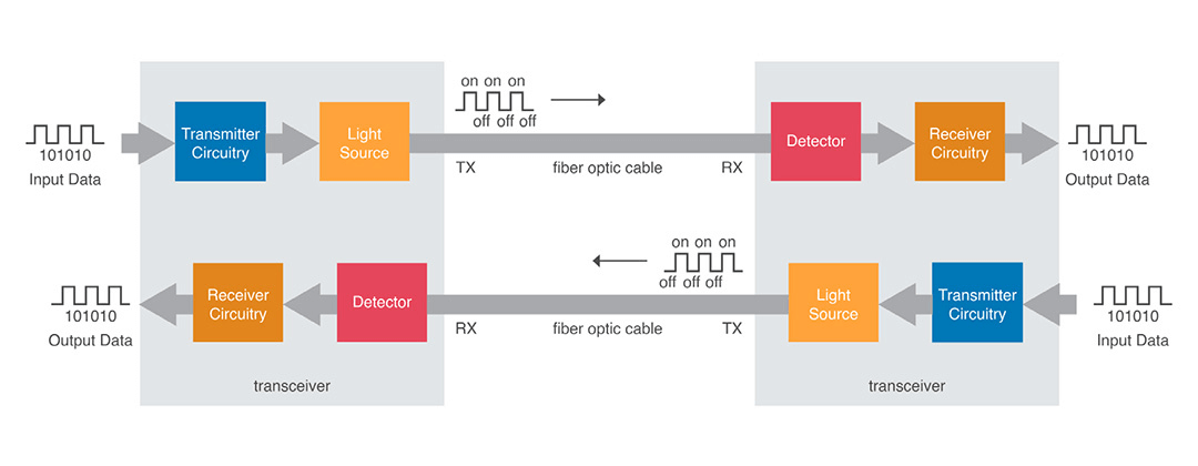 For electronic devices to take advantage of the benefits that fiber offers, the optical signal must be converted to and from the electrical domain. This is done using optical transceivers.