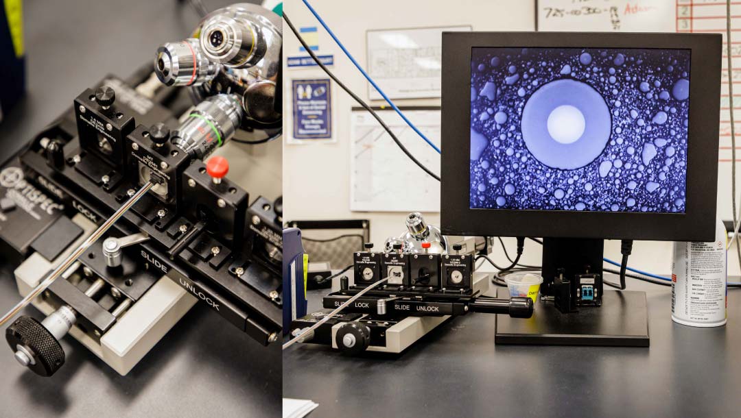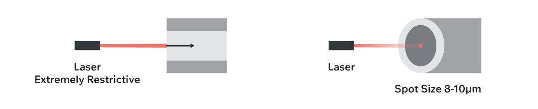 Figure 10. Graphic showing a laser’s narrow beam coupling into a single-mode fiber, illustrating the precision required.